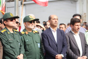 این مراسم با حضور مسئولان کشوری، استانی و شهرستانی،فرماندار دشتی، امام جمعه شهرستان، معاون نیروی انسانی قوه قضائیه،حجتالاسلام پورفاطمی مساور وزیر نفت در امور ایثارگران، اعضای شورای تأمین، مدیران دستگاههای اجرایی و جمعی از فرماندهان نظامی و انتظامی برگزار شد و شرکتکنندگان با سر دادن شعارهایی همچون «اللهاکبر»، «مرگ بر آمریکا» و «مرگ بر اسرائیل»، بر پایبندی خود به ارزشهای انقلاب اسلامی تأکید کردند.